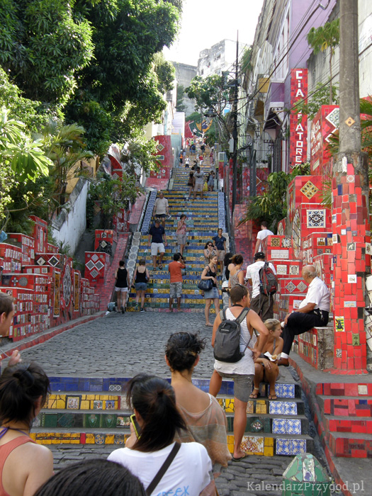 Za dnia miejsce prezentuje się w zupełnie innej odsłonie. W tamten wieczór jeszcze nie widziałem dlaczego. Ale przy świetle dziennym i mniejszym natłoku ludzi zobaczyłem i zrozumiałem. Schody w 1990 r. zaczął okładać kolorowymi płytkami pochodzący z Chile Jorge Selarón (1947-2013). Miał być skromny remont, ale zadziałał efekt kuli śnieżnej i po ponad 20 latach i wsparciu ludzi z całego świata artysta położył przeszło 2 000 płytek z całego świata, w tym również z Warszawy.